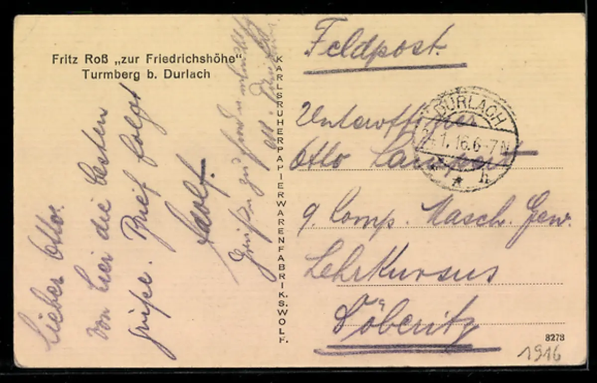 alte Ansichtskarte, gelaufen 1916, Eckknick re. oben, guter Zustand