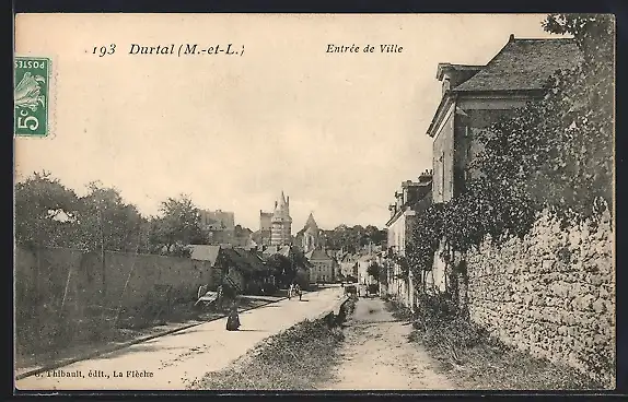 AK Durtal, Entrée de Ville avec vue sur le château en arrière-plan
