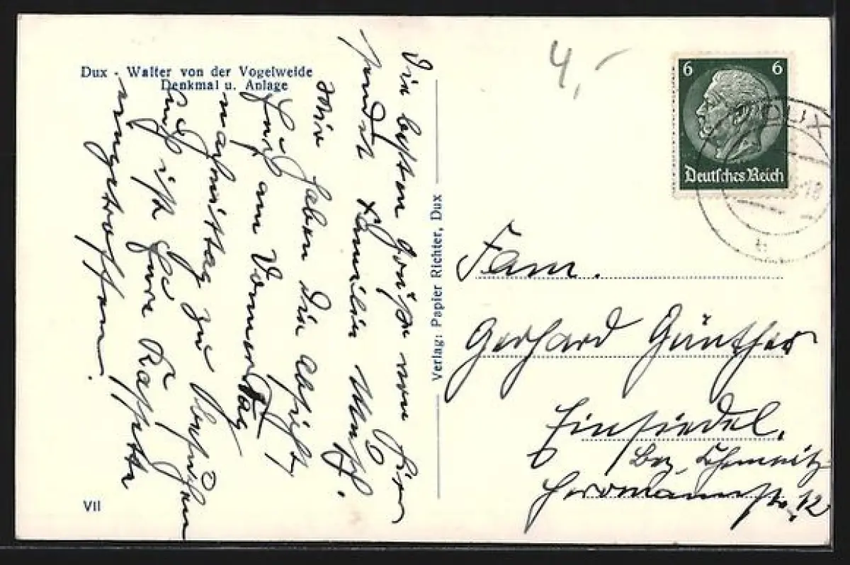 AK Dux, Walter von der Vogelweide Denkmal und Anlage