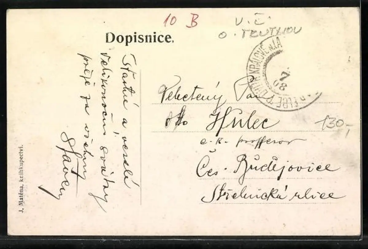 alte Ansichtskarte, gelaufen 1908, Briefmarke entfernt, guter Zustand