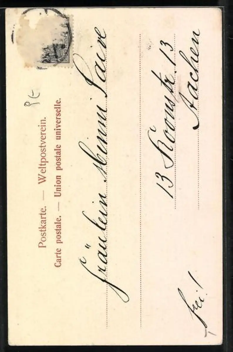 alte Ansichtskarte, gelaufen, Briefmarke entfernt, guter Zustand