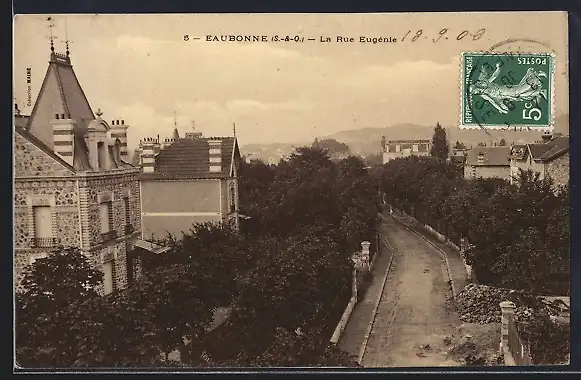 AK Eaubonne, La Rue Eugénie avec vue sur les maisons et la végétation environnante
