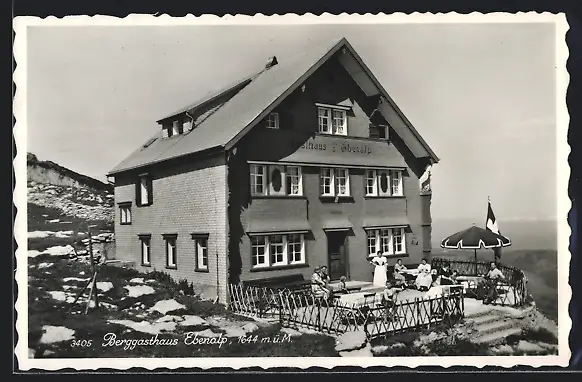 AK Ebenalp, Teilansicht Berggasthaus Ebenalp mit Gästen