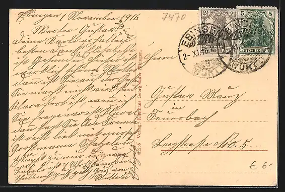 alte Ansichtskarte, gelaufen 1916, Stempelspur, guter Zustand