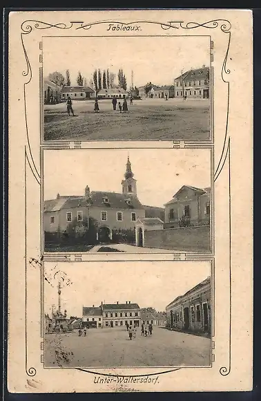 AK Ebreichsdorf, Unter-Waltersdorf, Dorfplatz mit Denkmal, Ortspartie