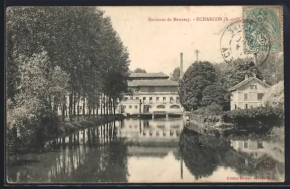 AK Écharcon, Vue sur la rivière et la fabrique entourée d`arbres