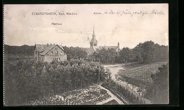 AK Eckardtsheim / Minden, Pfarrhaus und Kirche