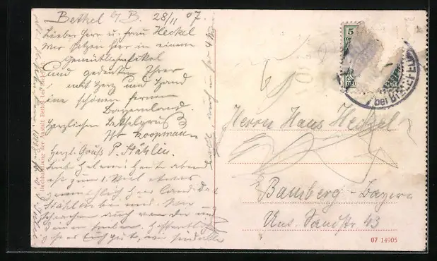 gelaufen 1907, Briefmarke entfernt, rückseitig Klebe- und Papierreste, aus Leporello, guter Zustand