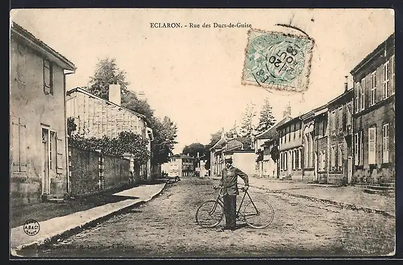 AK Éclaron, Rue des Ducs-de-Guise avec un homme et son vélo