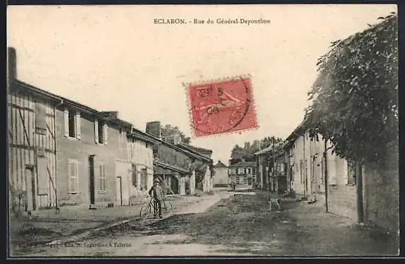 AK Éclaron, Rue du Général-Deportion avec bicyclette et maisons alignées