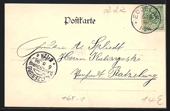 alte Ansichtskarte, gelaufen 1898, guter Zustand