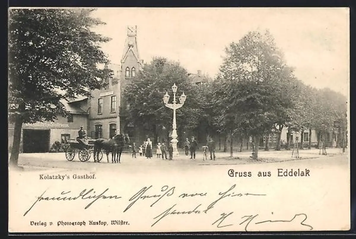 AK Eddelak, Kolatzky`s Gasthof mit Zweispänner
