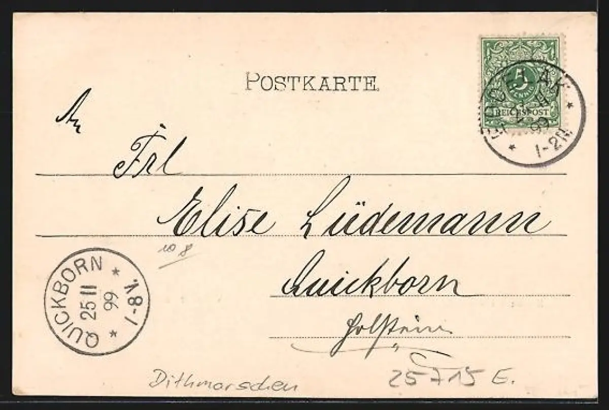 alte Ansichtskarte, gelaufen 1899, guter Zustand