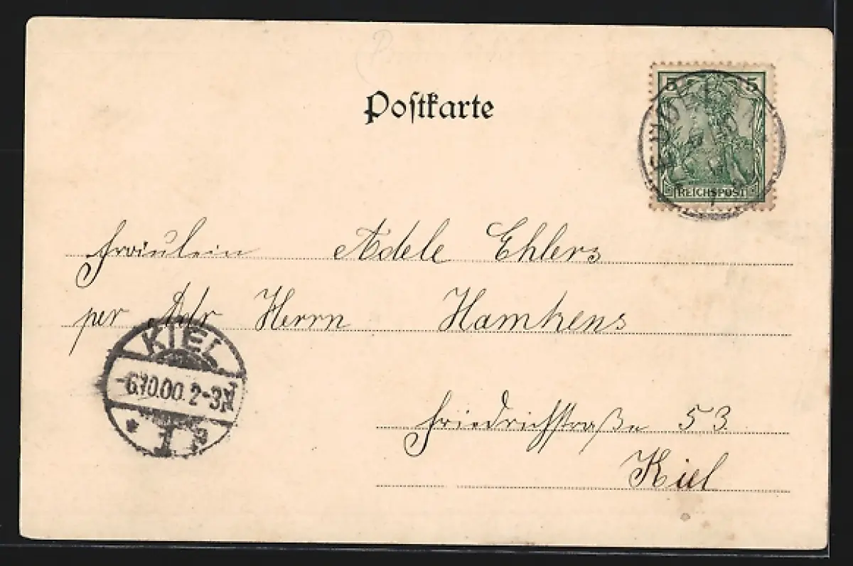 alte Ansichtskarte, gelaufen 1900, guter Zustand