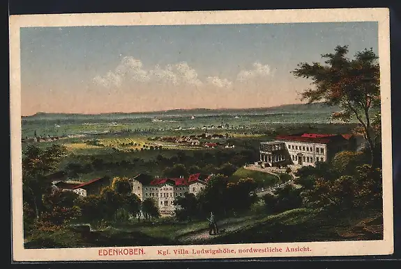 AK Edenkoben, Kgl. Villa Ludwigshöhe, nordwestliche Ansicht aus der Vogelschau