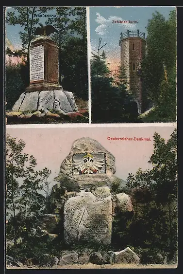 AK Edenkoben, Pfau-Denkmal, Schänzelturm, Oesterreicher-Denkmal