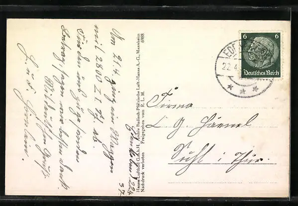 alte Ansichtskarte, gelaufen 1937, guter Zustand