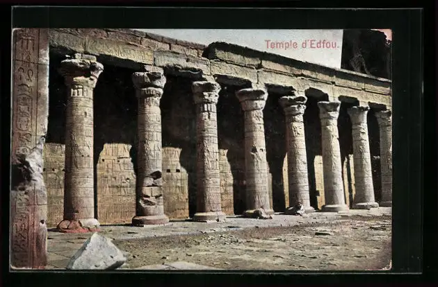 AK Edfou, Tempelanlagen mit Hieroglyphen