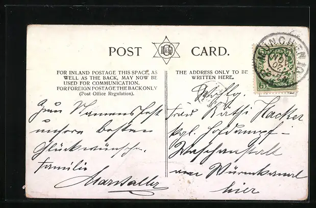 alte Ansichtskarte, gelaufen 1907, Eckknick unten rechts, guter Zustand