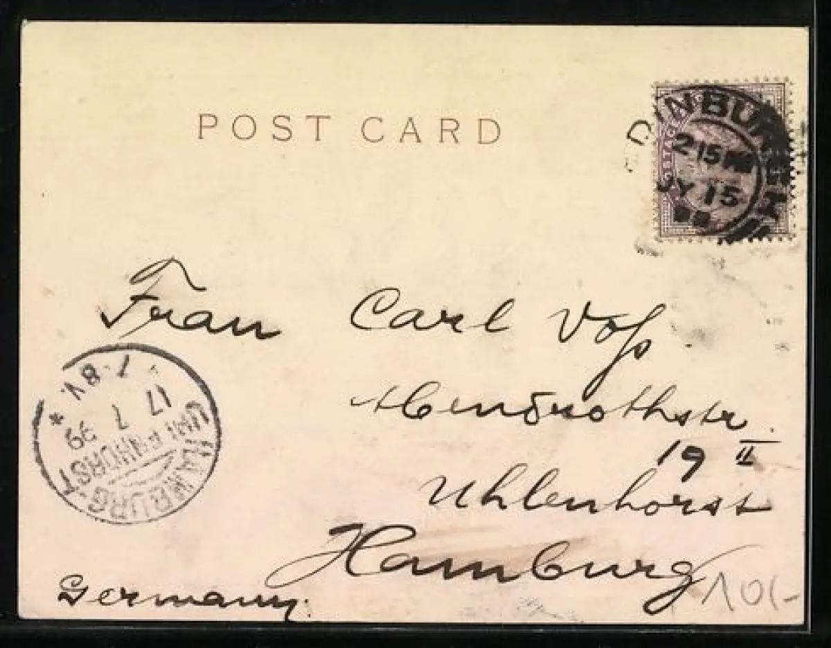 alte Ansichtskarte, gelaufen 1899, Stempelspur, guter Zustand