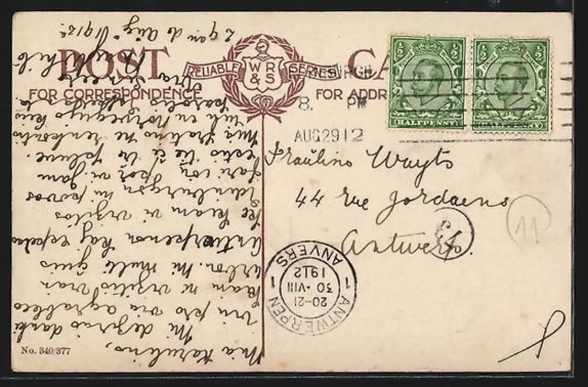 alte Ansichtskarte, gelaufen 1912, Stempelspur, Eckknick rechts unten, guter Zustand