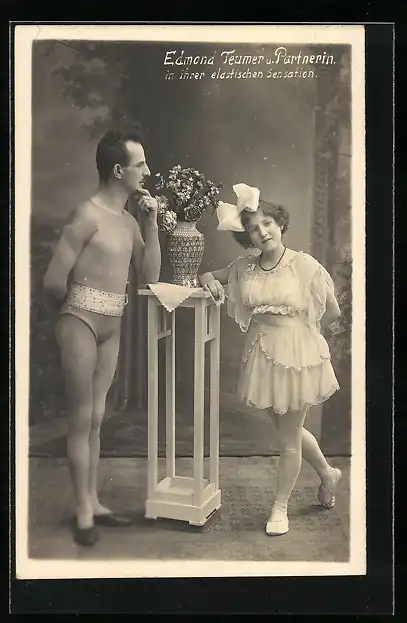 AK Edmond Teumer u. Partnerin in ihrer elastischen Sensation, Portrait