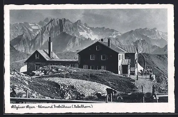 AK Edmund Probsthaus, Berghütte mit Nebelhorn in den Allgäuer Alpen