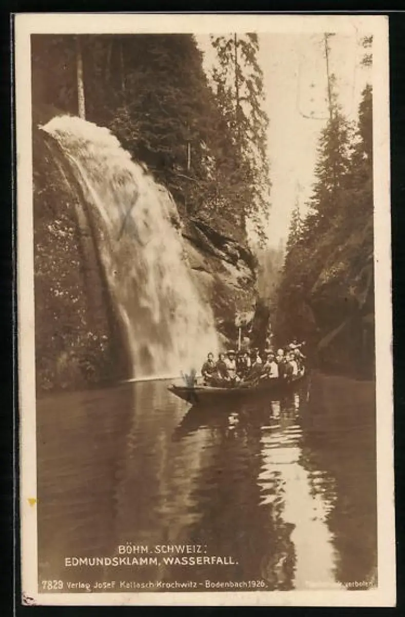 AK Edmundsklamm, Wasserfall in der Böhm. Schweiz