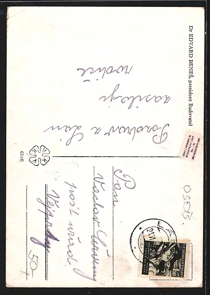 alte Ansichtskarte, gelaufen, Eckknicke oben, rückseitig Klebe- und Papierreste, guter Zustand
