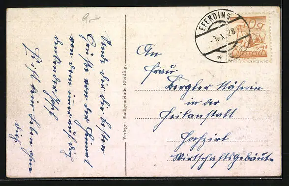 alte Ansichtskarte, gelaufen 1928, Oberflächenschaden, Stempelspur, guter Zustand