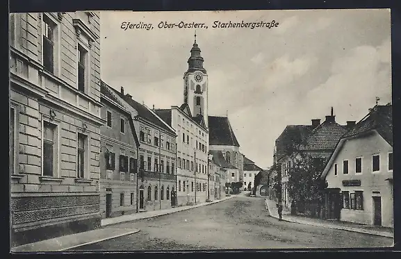 AK Eferding /Ober-Oesterr., Starhenbergstrasse mit Blick zur Kirche
