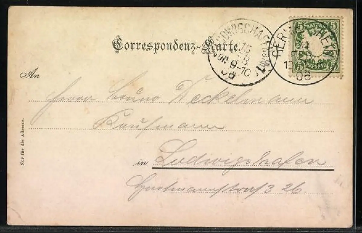 gelaufen 1906, Eckknick re. unten, guter Zustand