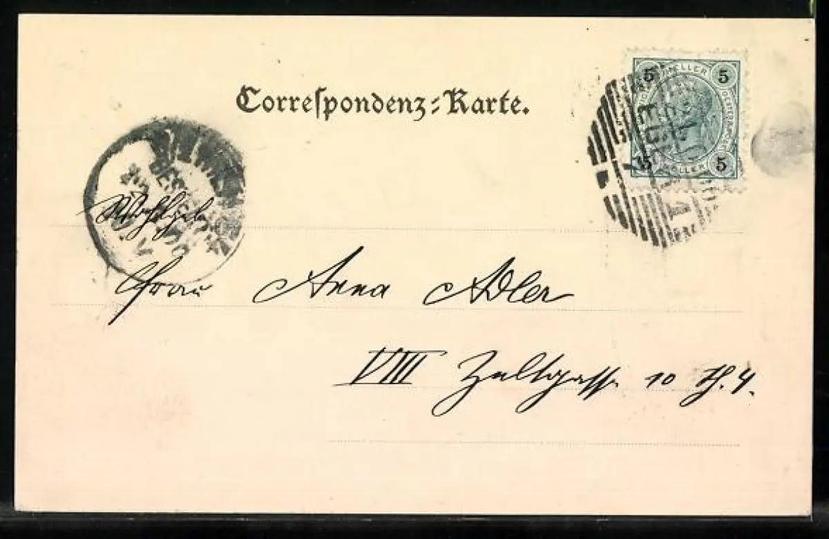 alte Ansichtskarte, gelaufen 1900, Bugspur li. oben, guter Zustand