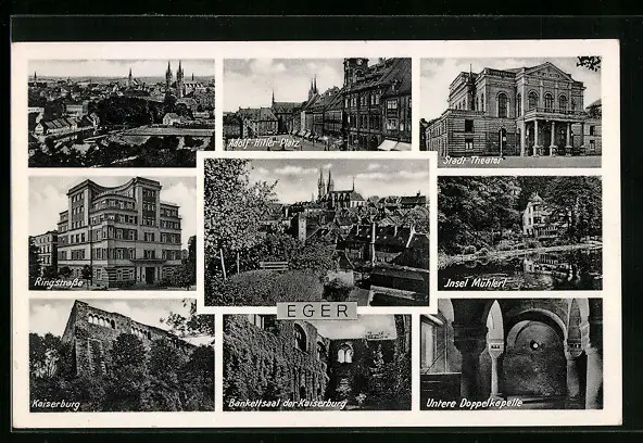 AK Eger, Ringstrasse, Kaiserburg, Insel Mühlerl, Stadt-Theater