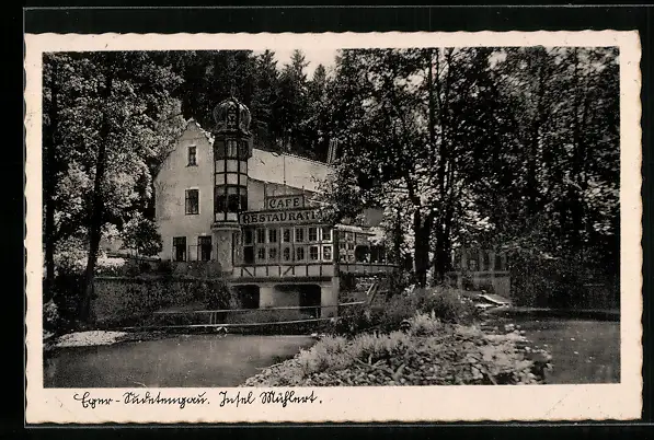 AK Eger /Sudetengau, Cafe Restaurant auf der Insel Mühlert