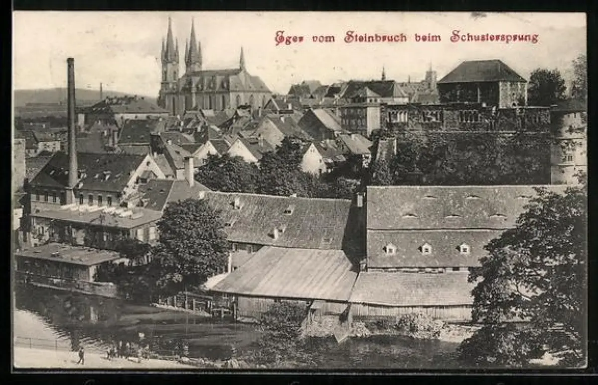 AK Eger, Teilansicht mit Kirche vom Steinbruch beim Schustersprung aus