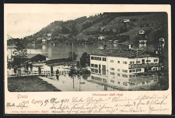 AK Egern, Hochwasser 1899, Ortspartie