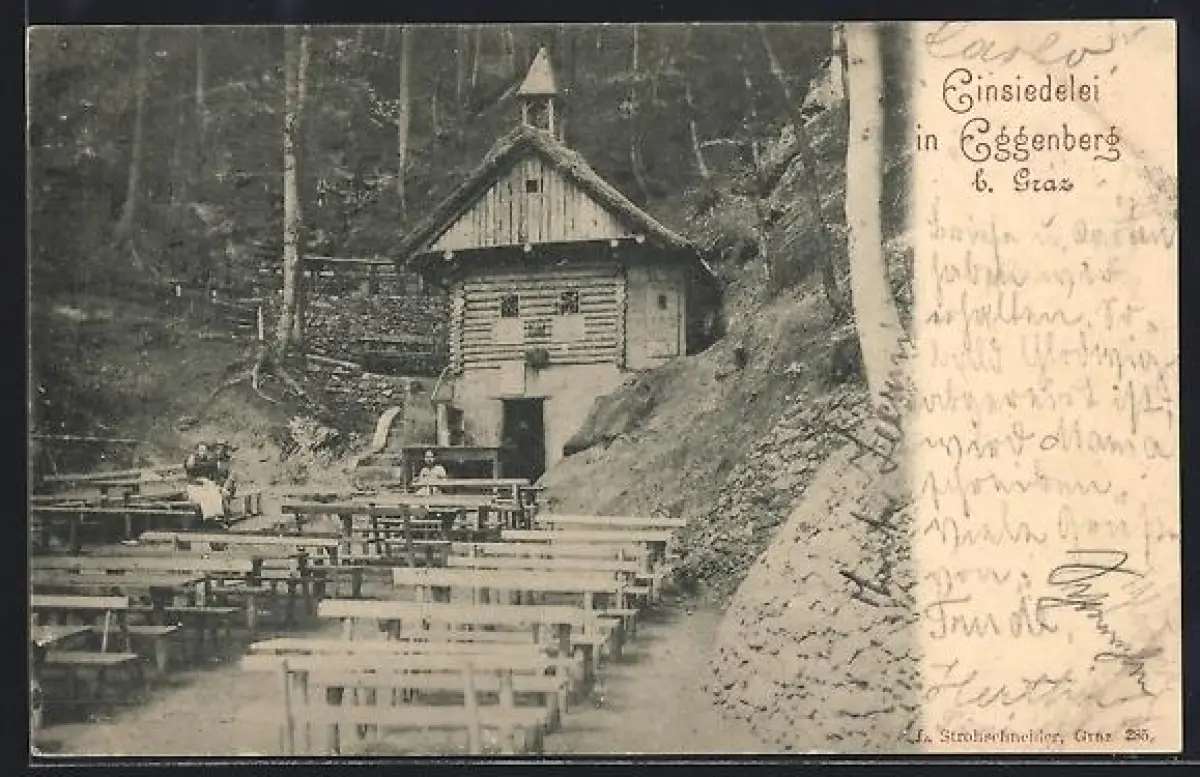 AK Eggenberg b. Graz, Einsiedelei mit Gästen
