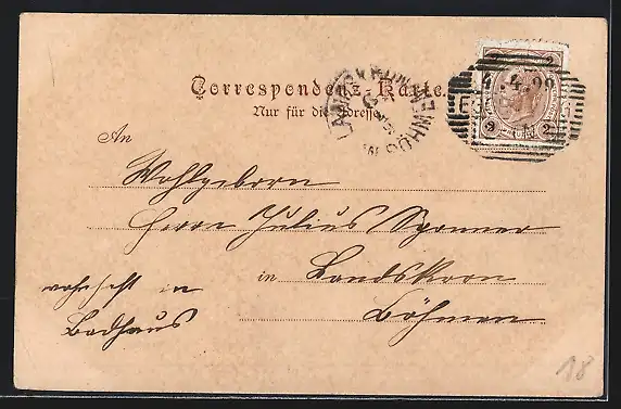 gelaufen 1899, Eckknicke li. oben und re. unten, guter Zustand