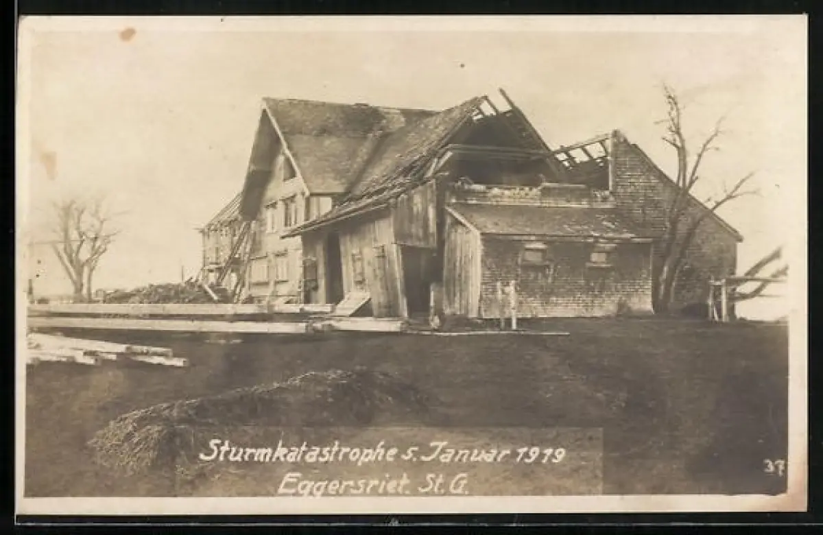 AK Eggersriet, Zerstörtes Haus nach der Sturmkatastrophe am 05. Januar 1919