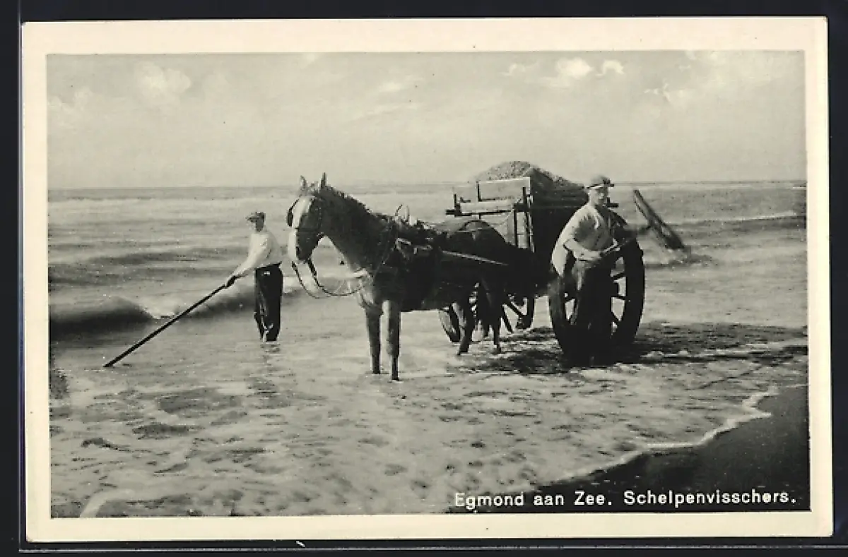 AK Egmond aan Zee, Schelpenvisschers, Muschelnsammler mit Pferdekutsche