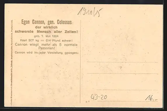 AK Egon Cannon, übergewichtiger Colossus, auf einer Waage