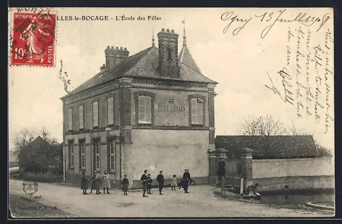 AK Egriselles-le-Bocage, L`École des Filles avec des enfants devant l`entrée