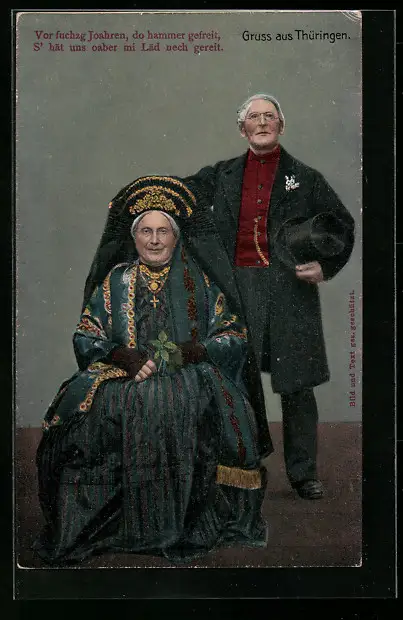 AK Ehepaar posiert in thüringischer Tracht