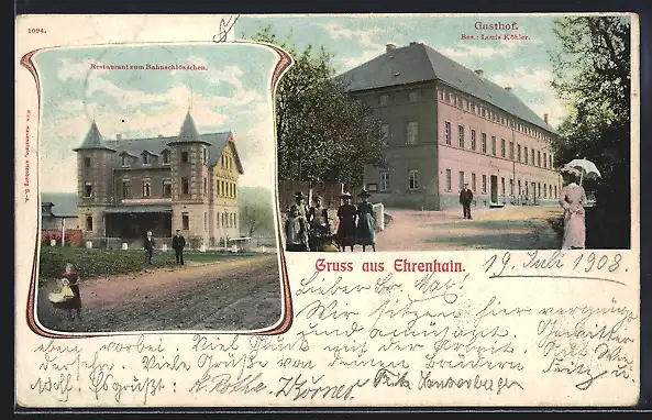 AK Ehrenhain, Gasthof Louis Köhler, Restauration Bahnschlösschen