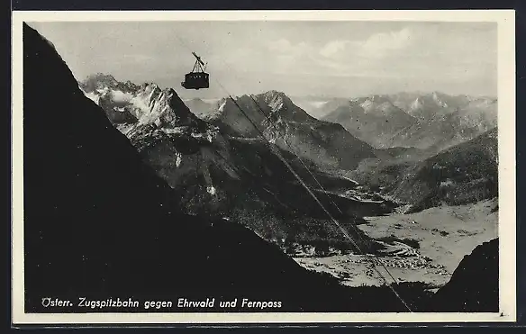 AK Ehrwald /Tirol, Österr. Zugspitzbahn gegen Ehrwald und Fernpass