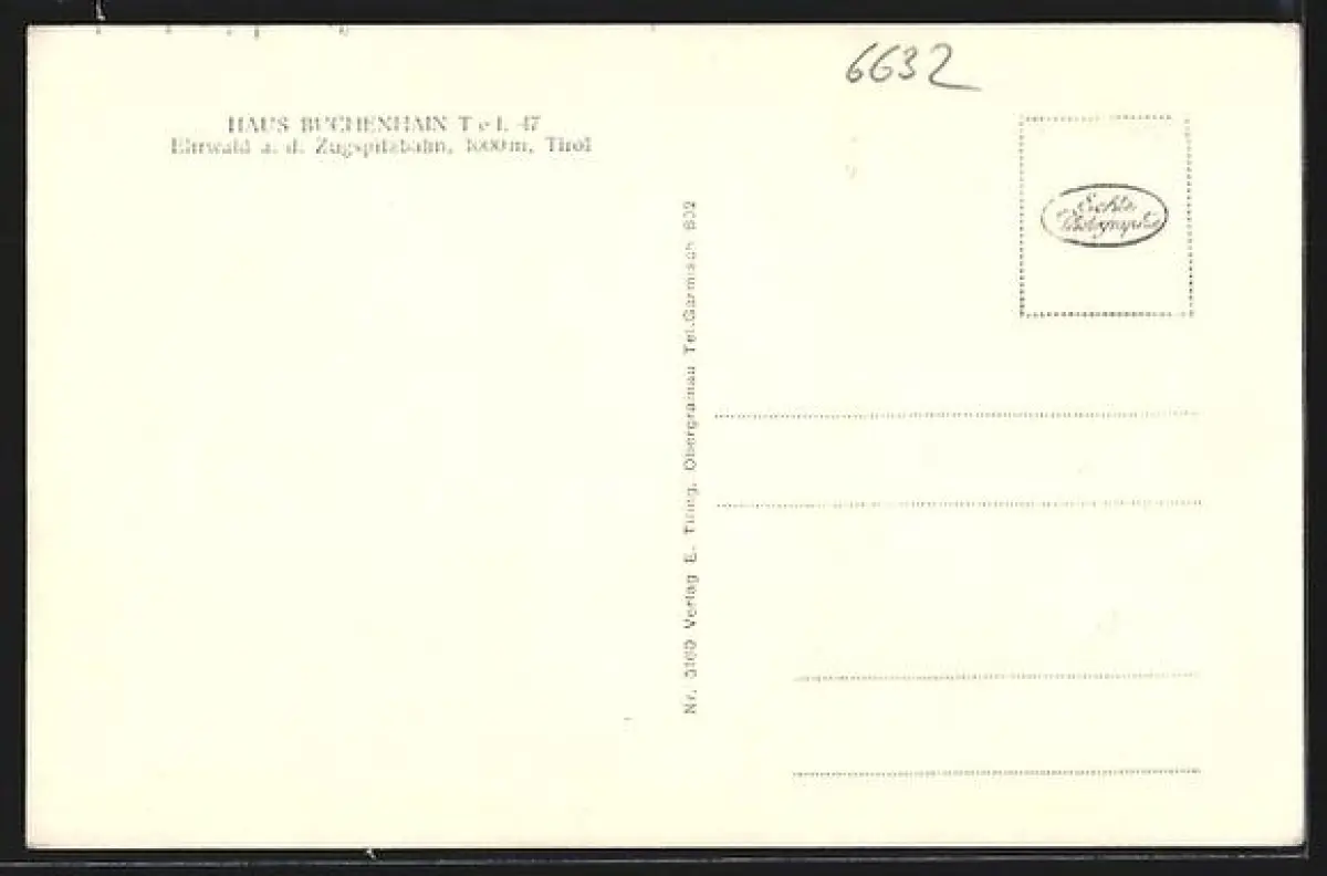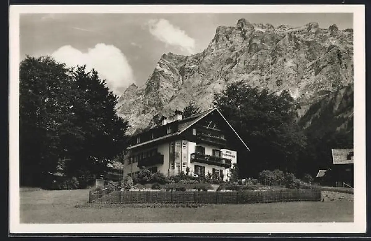 AK Ehrwald a. d. Zugspitzbahn, Haus Buchenhain mit Garten und Gipfelpanorama