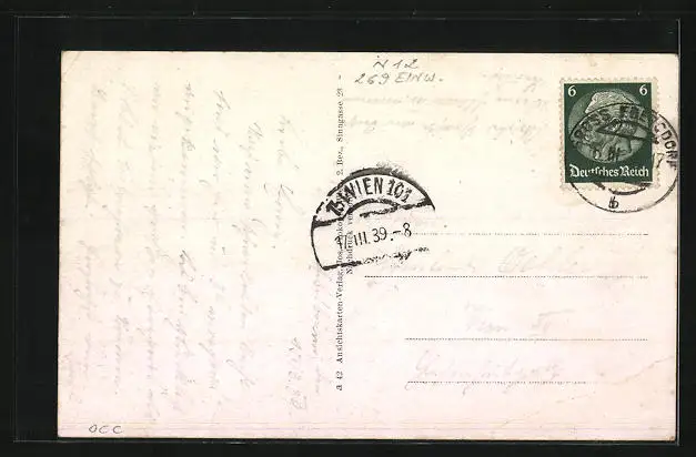 alte Ansichtskarte, gelaufen 1939, Eckknicke li. unten u. re. oben, guter Zustand