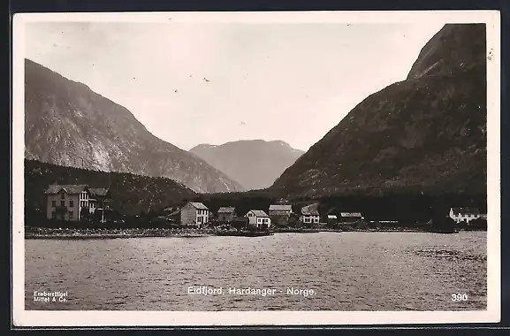 AK Eidfjord /Hardanger, Ortsansicht mit Bergpanorama