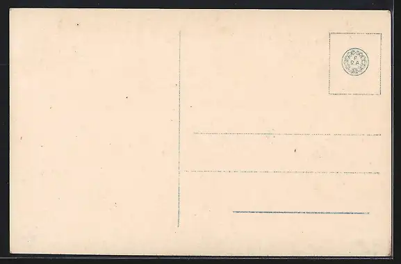 Personenbezogene Daten auf der Rückseite der Karte wurden durch blauen Textmarker unkenntlich gemacht. Die blauen Stellen sind auf die Vorderseite durchgeweicht und wirken sich negativ auf das Postkartenfoto aus